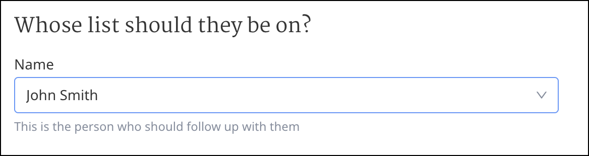 Next, you can add your new volunteer to the list of an Organizer or Director. We recommend assigning the volunteer to the Organizer or Director who will likely be in contact with them.