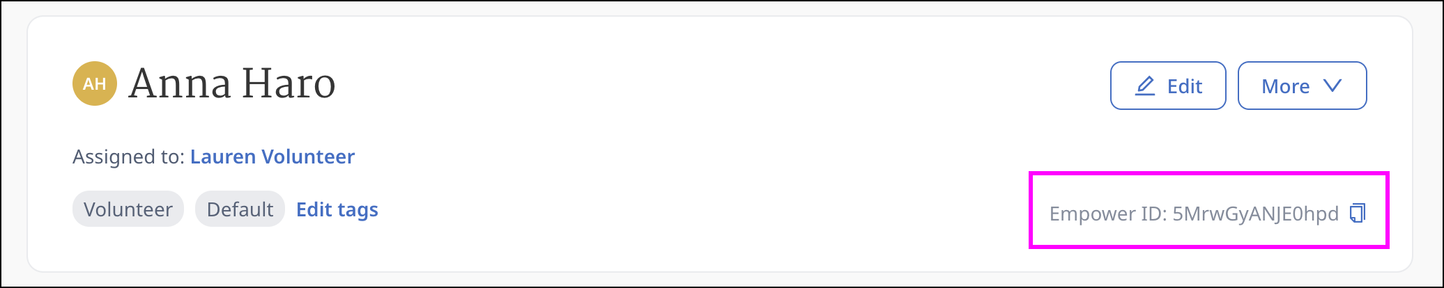 You are now on the person’s page. Their unique EID should be on the top right side of the page.
