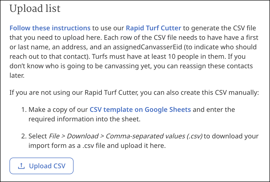 You need to upload your list of contacts who you would like volunteers to reach out to in their door-to-door canvassing.