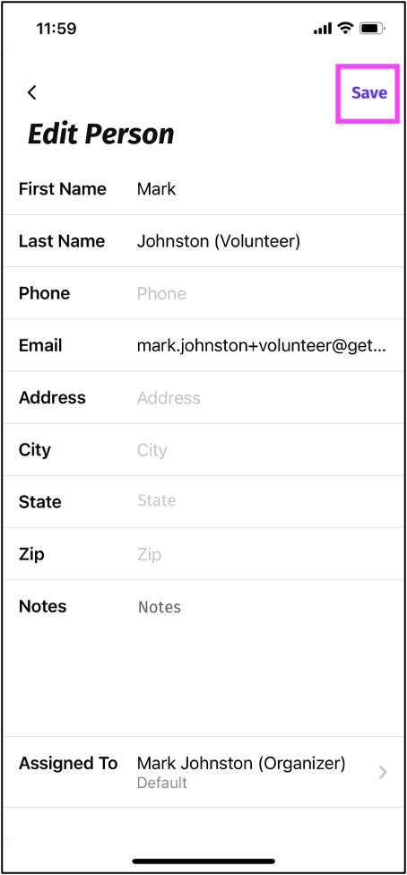 You are now able to change the information of the volunteer, including their name, phone number, email, and address. Click Save to update the volunteer’s information.