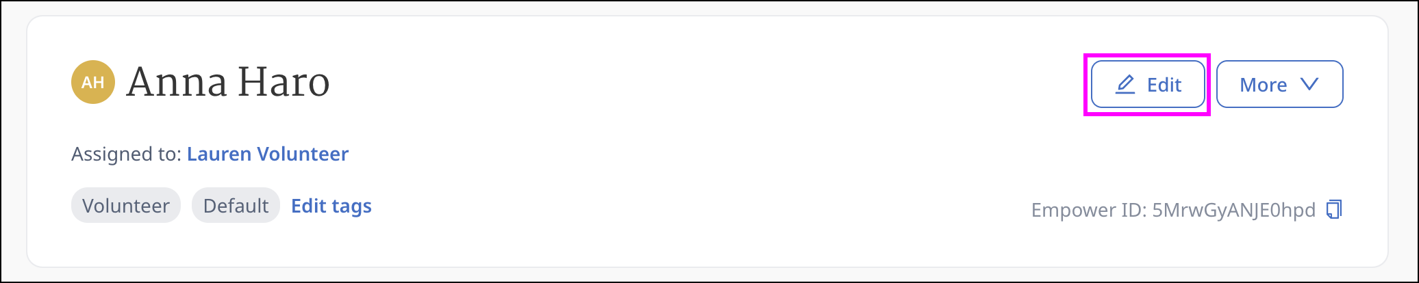 You are now on that volunteer’s page. Click on the More button on the top right corner of your screen then select Edit.
