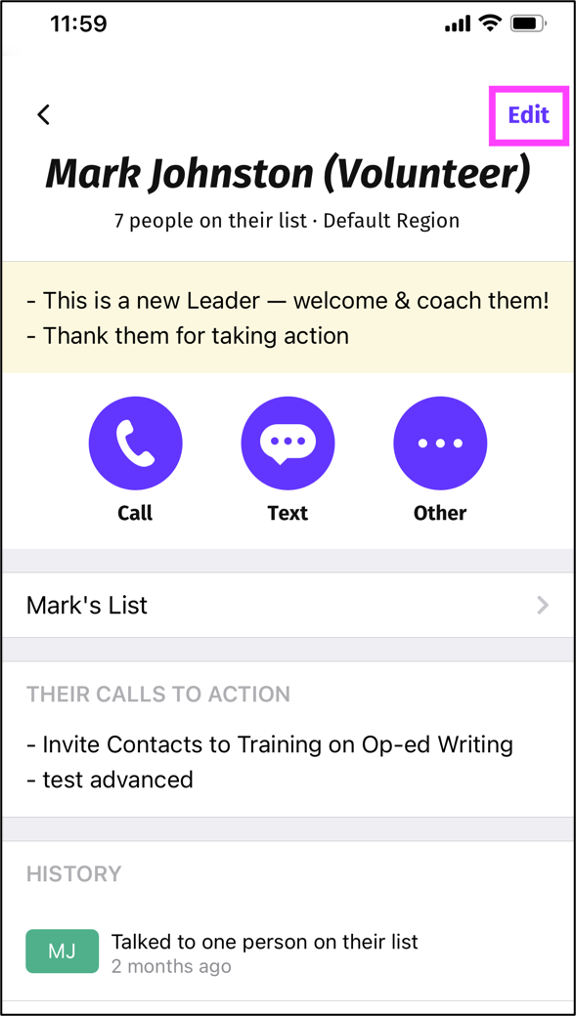 Editing information will allow you to maintain more up to date communication with people involved in your organizing campaign.