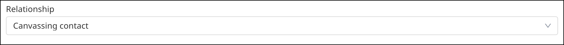 While canvassed contacts appear on the Canvassing list by default, this can be changed by setting the contact Relationship field anywhere that a contact can be edited. For example, volunteers can move a contact from Canvassing to Personal contact if they develop a more personal relationship with that person.