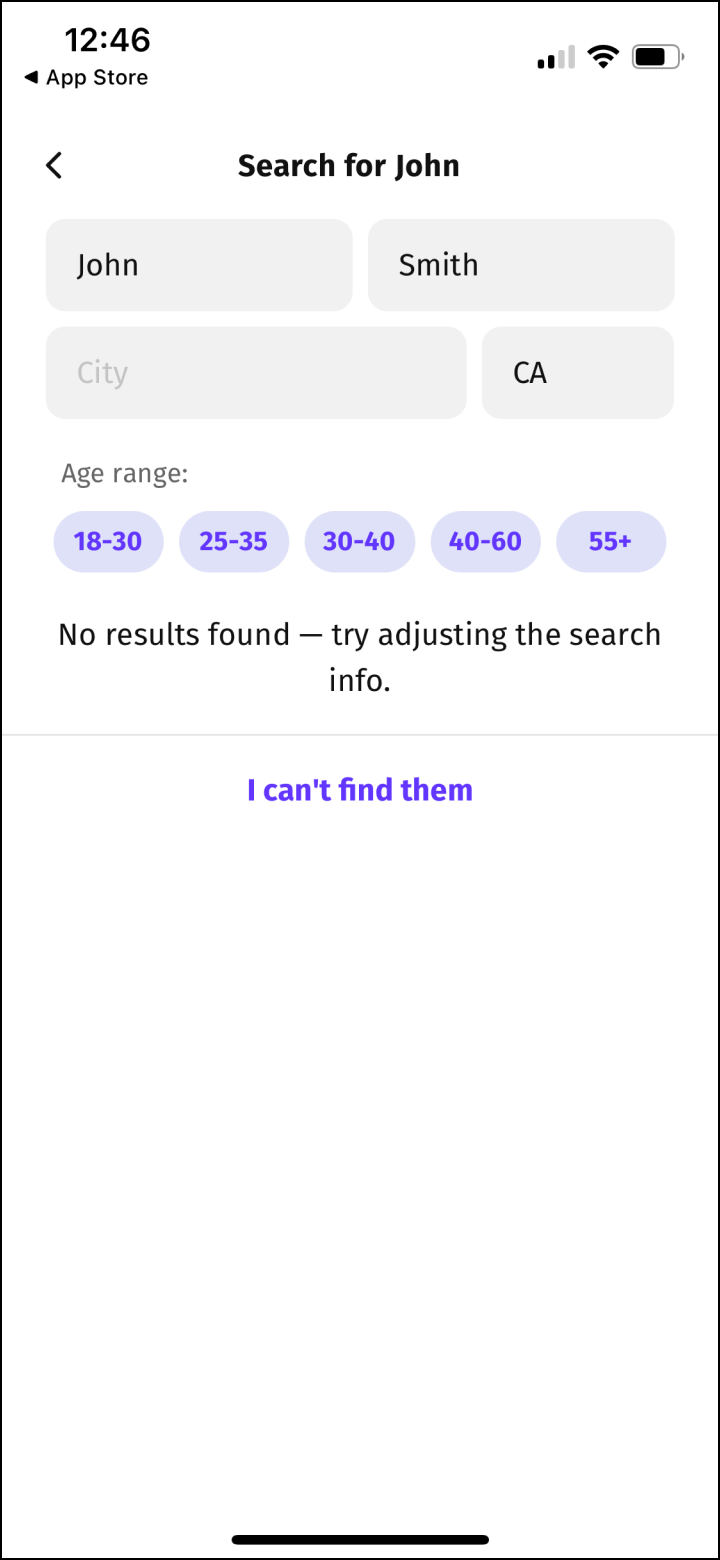 On the Search For page, you can start adding information (First Name, Last Name, City, State)