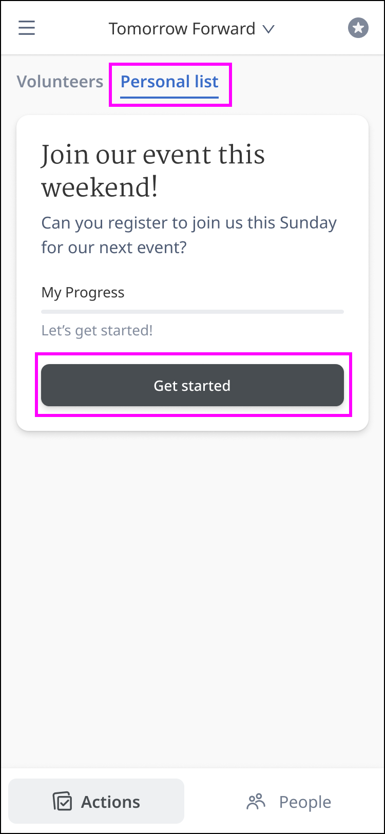 If you have both a Volunteers and Personal List tab, click on Personal List. Then click on theGet Startedbutton
