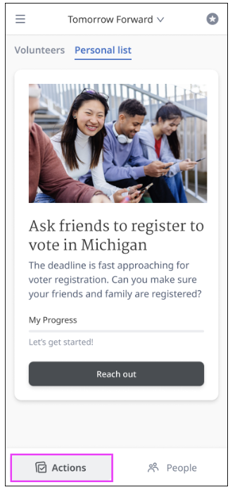 If you have both a Volunteers and Personal List tab, click on Personal list. Then click on the Reach out button